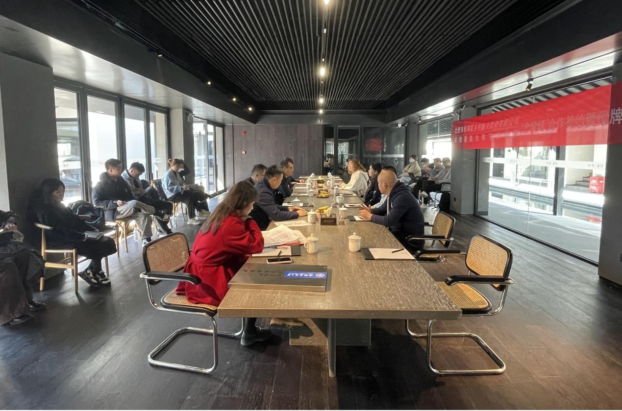 本网讯 11月11日,艺术学院与合肥市包河区乡村振兴投资有限公司在圩美磨滩民宿举行“产学研”合作签约暨教学实习基地授牌仪式。学院副院长邢瑜、各专业系、教研室负责人包河区乡村振兴公司总经理汪青文、副总经理沈涛出席签约仪式。