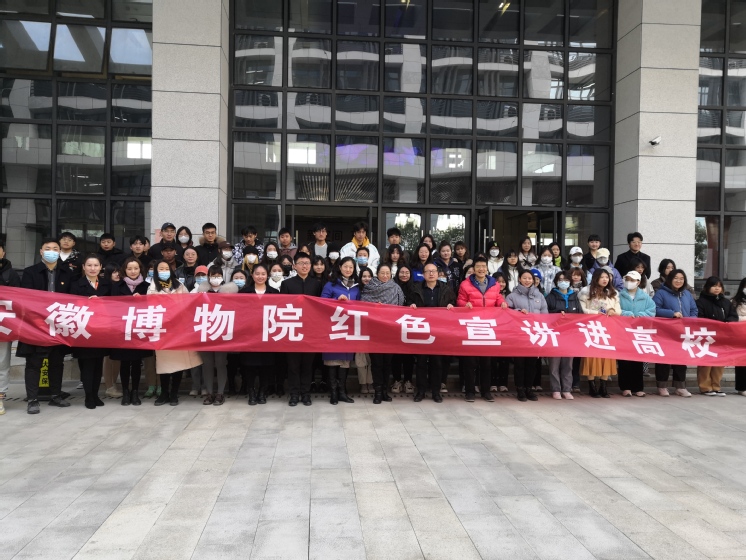 安徽博物院红色宣讲小分队10名讲解员在安徽博物院社会教育部主任马文娟、副主任徐康的带领下,为同学们带来了《毛泽东三改叶挺称谓》、《拂晓报》、《渡江英雄马毛姐》等生动的革命故事,与各位同学一起回顾百年风雨历程中的革命往事。在中国共产党领导下,一百年来,革命精神如火炬明灯,始终照亮我们前行的道路,激荡起矢志不渝、一往无前的伟大力量,推动我们党从小到大、由弱到强,越过急流险滩,穿过惊涛骇浪,从一艘小小红船成为领航中国行稳致远的巍巍巨轮。