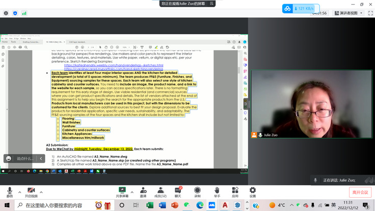 本网讯 本学期,为保证艺术学院环境设计专业中外合作项目教学工作的顺利进行,身在国外的外籍教师、和在国内的中方老师与同学们共同克服十几个小时的时差,灵活利用多种教学方法,在微信群、Zoom和腾讯会议等平台持续开展线上教学,保障了专业课程教学顺利进行。
