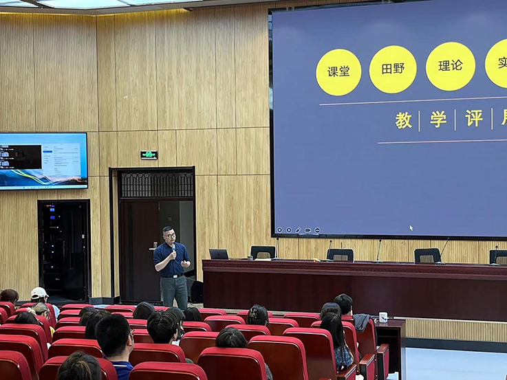 卜令峰以乡村振兴“二十字方针”为指导思想,从乡村实际需求出发,理论与实践相结合,提出系统性的全局视角、细节性的温度设计以及学术性的深度构建等乡村设计的三种思维路径。他表示,近年来多次参与乡村振兴项目,探索通过艺术赋能和设计思维为乡村振兴注入新的活力和创新,在实际项目中应用设计思维解决问题,为乡村振兴中设计方法的研究积累宝贵经验。本次讲座主题鲜明、内涵丰富、重点突出,既有深入的理论分析,也有实践中的升华提炼,具有很强的针对性和指导性。在交流互动环节,与会教师围绕乡村振兴中的思维研究与实践的困惑、困难困境以及解决的方式方法展开热烈讨论,现场不时响掌声和欢笑声。