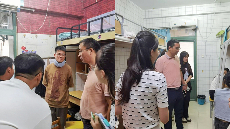 7日晚,艺术学院党委副书记任磊2023新生辅导员党秋晨老师来到新生寝室,与新生们暖心交流,亲切问候了同学们是否安顿好,及时了解学生需求,言辞与行动尽显关心与爱护