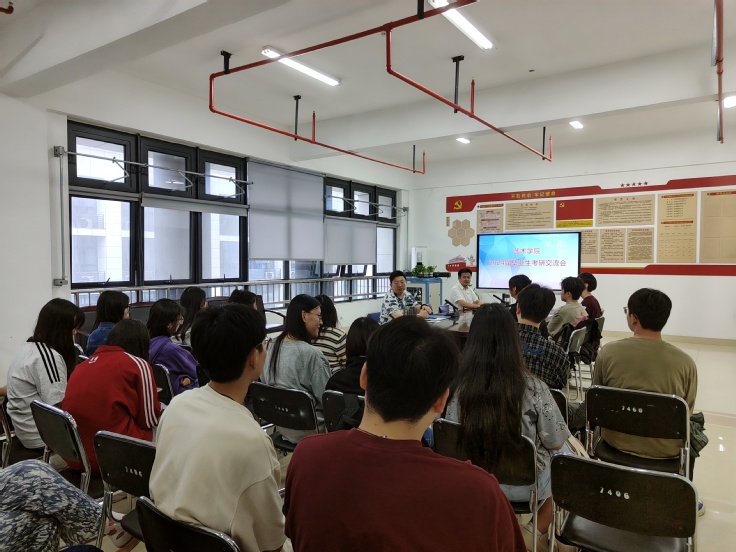 本网讯  近日,艺术学院邀请环境设计系邵国良老师、视觉传达系谷宗州老师、动画系范骏老师及学院部分已考取研究生的2019级毕业生,共同为艺术学院20级、21级准备参加研究生考试的同学传授考研经验。