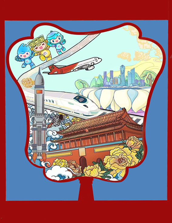 21环境设计2班的刘泽鑫同学利用巧妙的构图,描绘了中国共产党团结带领中国人民奋进新征程的宏伟蓝图,体现了中华民族强大的生命力、创造力和凝聚力,表达了对中国未来发展前景的美好期望