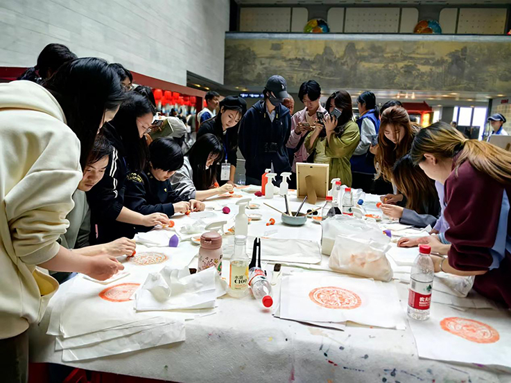本网讯 4月13日14日,为深入与安徽博物院的全方位战略合作,艺术学院师生参加了安徽博物院“皖美年华”传统文化与非遗展演春日专场活动,本次活动有风物市集、非遗文化体验、文艺演出、春日游园等丰富多彩的形式。师生们受邀参加了非遗文化体验和春日游园两项活动。学院的“安徽文艺评论创作基地暨文艺志愿服务点文艺志愿服务小分队”师生开展了系列文化体验活动,其中非遗传拓体验、花草扇制作体验活动由田英老师带领11名22级视觉传达班的学生参与,春日游园活动则由刘琳琳老师带领动画班6位同学参与。