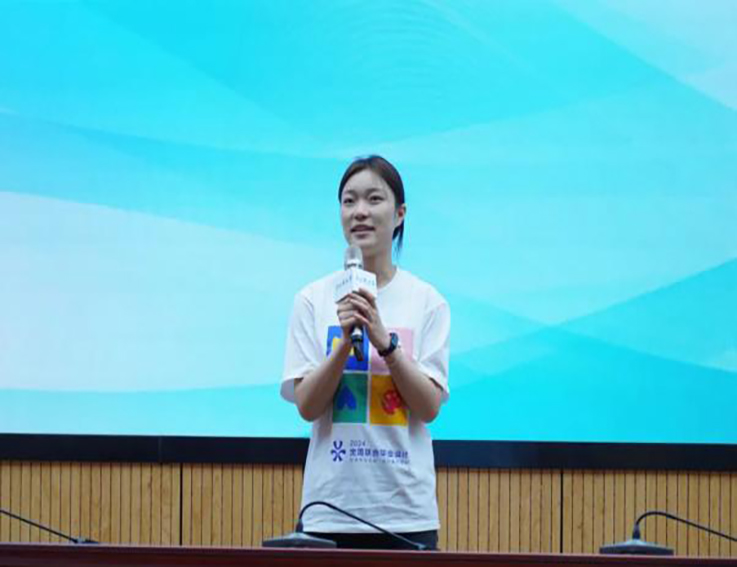 第二位发布人李广悦则与大家分享了以一市箬岙酒为毕业设计主题的设计实践故事。以宁海特有的白枇杷为素材,把箬岙村的文化底蕴和自然风光融入到箬岙酒包装设计中。她讲述了自己设计中的故事和思考,也希望每一位箬岙酒用户能感受到她的用心和诚意。