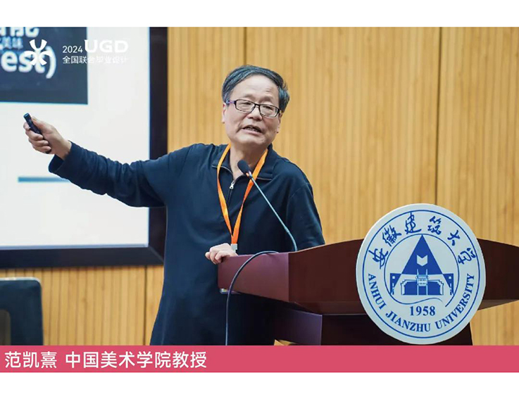 在开幕式学术报告环节,中国美术学院范凯熹教授作了题为《AIGC协同艺术设计类专业毕业设计》的精彩演讲。范教授结合艺术专业学子毕业设计创作过程的痛点和需求,阐述了AIGC会给毕业设计带来什么?”“艺术专业毕业设计如何攻克AIGC的难点?”等问题,以丰富的实际案例和深入浅出的讲解,展示了AIGC在艺术设计领域的巨大潜力和应用前景。范教授对专业的极致热忱和探索精神赢得全场的热烈掌声和高度评价。范教授与现场师生积极互动,充分交流,了并致以由衷的敬佩之情。