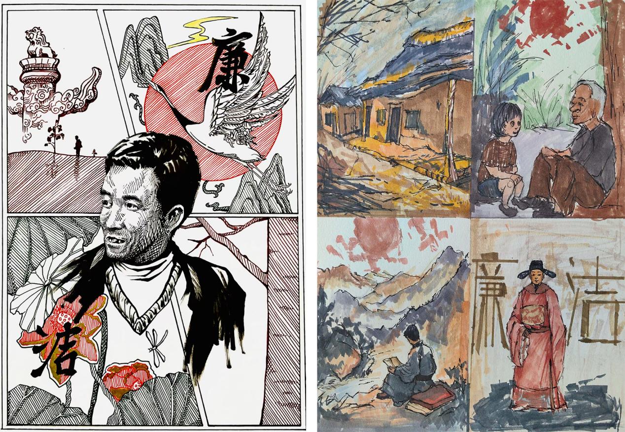 同学们以细腻的笔触、丰富的色彩,从历史古籍、文献资料和真实事件中汲取灵感,以廉洁为主题,创作出一幅幅充满寓意的漫画。这些作品诠释了清正廉洁的高尚品质,展现了同学们对廉洁文化的深刻理解。
