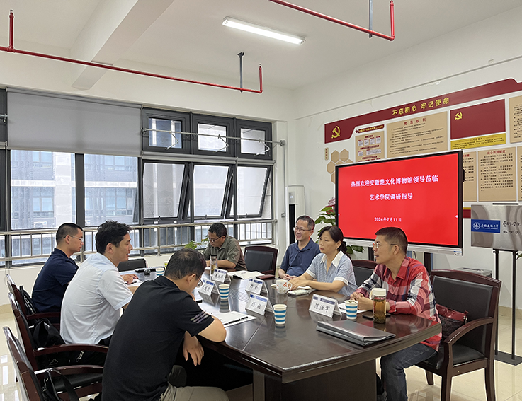 邢瑜对安徽楚文化博物馆领导一行表示欢迎,介绍了艺术学院近年发展情况、取得的成绩,以及双方可以展开合作的具体领域。黄朝晖副院长表示双方的合作将创新实践教学模式、推动安徽地方优秀传统文化资源的传播与开发。