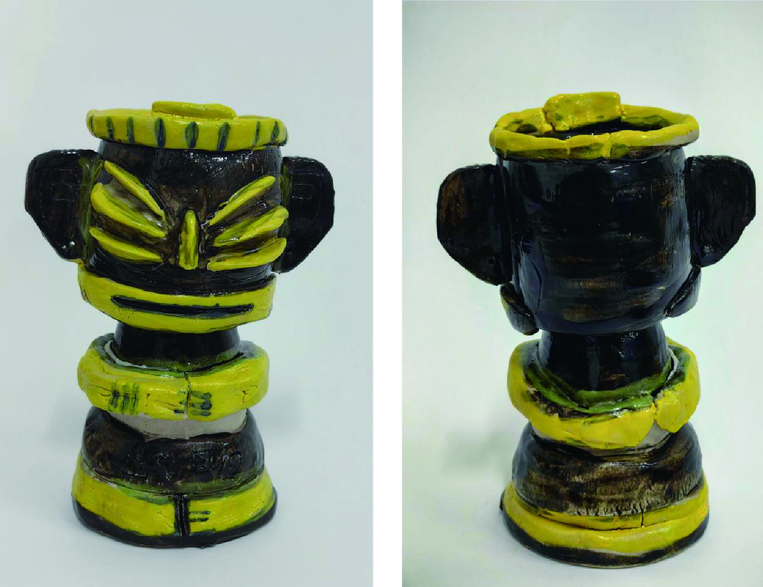 《三星堆笔筒》以三星堆文物为灵感参照青铜人头像的造型将多个几何形状通过创意手法组合在一起,打造出一款既实用又富有艺术感的学习用具,使用者不仅能感受历史的厚重感,还能在日常学习中体验文化的传承与创新。
