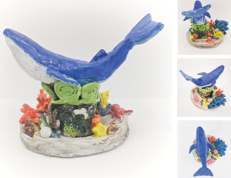 《自然生态—鲸与海》以自然生态为创作主题,将鲸鱼与大海的元素融入陶瓷艺术之中,展现出鲸鱼在大海中自由遨游的优美姿态,表达了人与自然和谐共生的美好愿景,传递了对海洋生态保护的重视。
