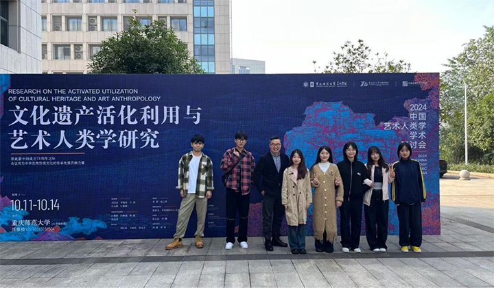 本网讯  1011-14日,艺术学院教师卜令峰副教授携七名硕士生前往重庆师范大学,受邀参加由中国艺术人类学学会发起的“文化遗产活化利用与艺术人类学研究”学术研讨会。此次会议吸引了来自全国各地的专家学者、艺术家及相关领域从业者,与会者围绕如何在现代社会中有效保护和传承文化遗产展开深入讨论,并分享各自的研究成果和实践经验。