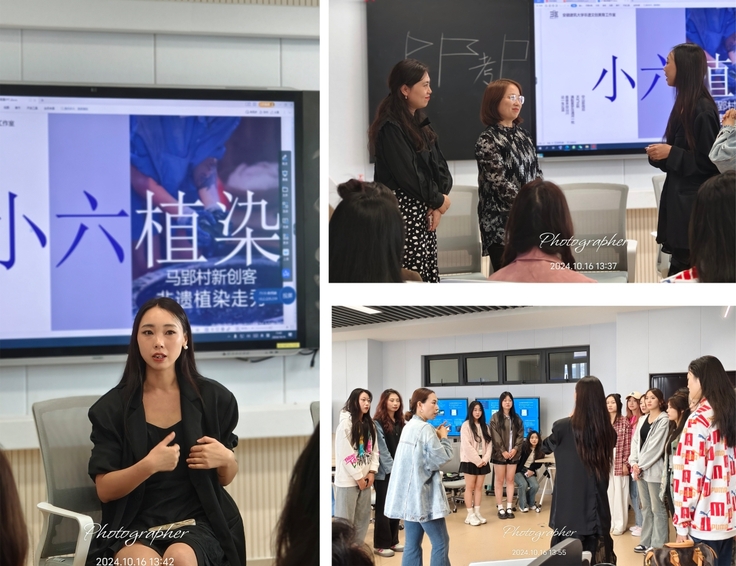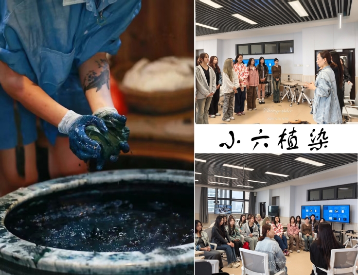 小六是马郢村才华横溢的新创客,凭借独特的审美和扎实的技艺,制作出许多富有观赏价值的植染衣物。她向同学们详细介绍了植物颜料的制作过程将天然颜料应用于染布的技术要领。小六不仅倾情分享了自己的创作经历,还热情邀请对植染感兴趣的同学参与在马郢村举行的展示活动,为他们量身定制独特的植染衣服。
