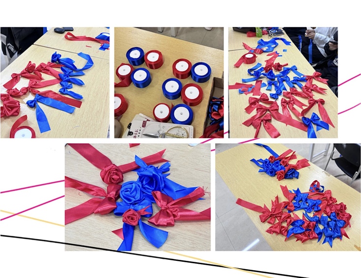 活动现场,同学们用丝带展示创意以红色和蓝色丝带为主角,灵巧的双手赋予它们新的“生。从构思设计到动手制作,每一个环节都充满了挑战和乐趣,每一个作品都充满了童趣和活力一幅幅精美的作品在他们的手中诞生同学们互相交流、学习,分享彼此的创作心得,整个教室洋溢着欢快的氛围。