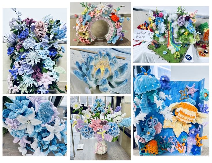 众多优秀的作品展现了创作者们精湛的手工技巧与对内心世界的反思与情感的表达,从秘密花园的彩虹河流到舞狮的袖珍灵动,每一件作品都见证了参与者在创作中找回自信、释放压力的过程,展现了同学们实现情感的自我调节与内心的疗愈的成效。