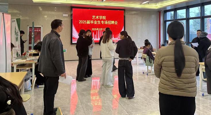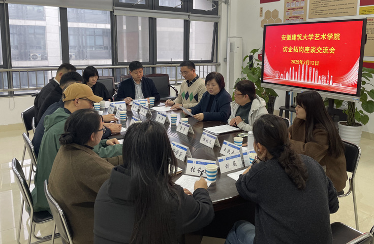 本网讯 为进一步深化校企合作、拓宽毕业生就业渠道,3月12日下午,艺术学院邀请中建深圳装饰有限公司安徽分公司等12家建筑装饰企业来校开展专场招聘会,并就企业用人需求、校企合作、人才培养等方面开展座谈,校党委常委、副校长李早出席座谈会并与用人单位亲切交流,会议由艺术学院党委副书记(主持工作)潘青主持,艺术学院党委副书记任磊及毕业班辅导员参会。