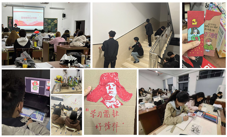 扎根服务实践根基艺术学院团委组织各团支部于35日开展系列实践活动。志愿者们化身图书管家,在校图书馆完成书籍整理、书柜清洁及空间优化工作。同步开展的雷锋精神知识竞赛、雷锋形象IP设计大赛、“学雷锋”主题板报创作等活动,通过废旧材料艺术再生、文化符号青春化演绎等创新形式,使思政教育融入校园每个角落以设计思维重构雷锋形象,用艺术语言续写奉献篇章,为校园文化注入鲜活生命力。