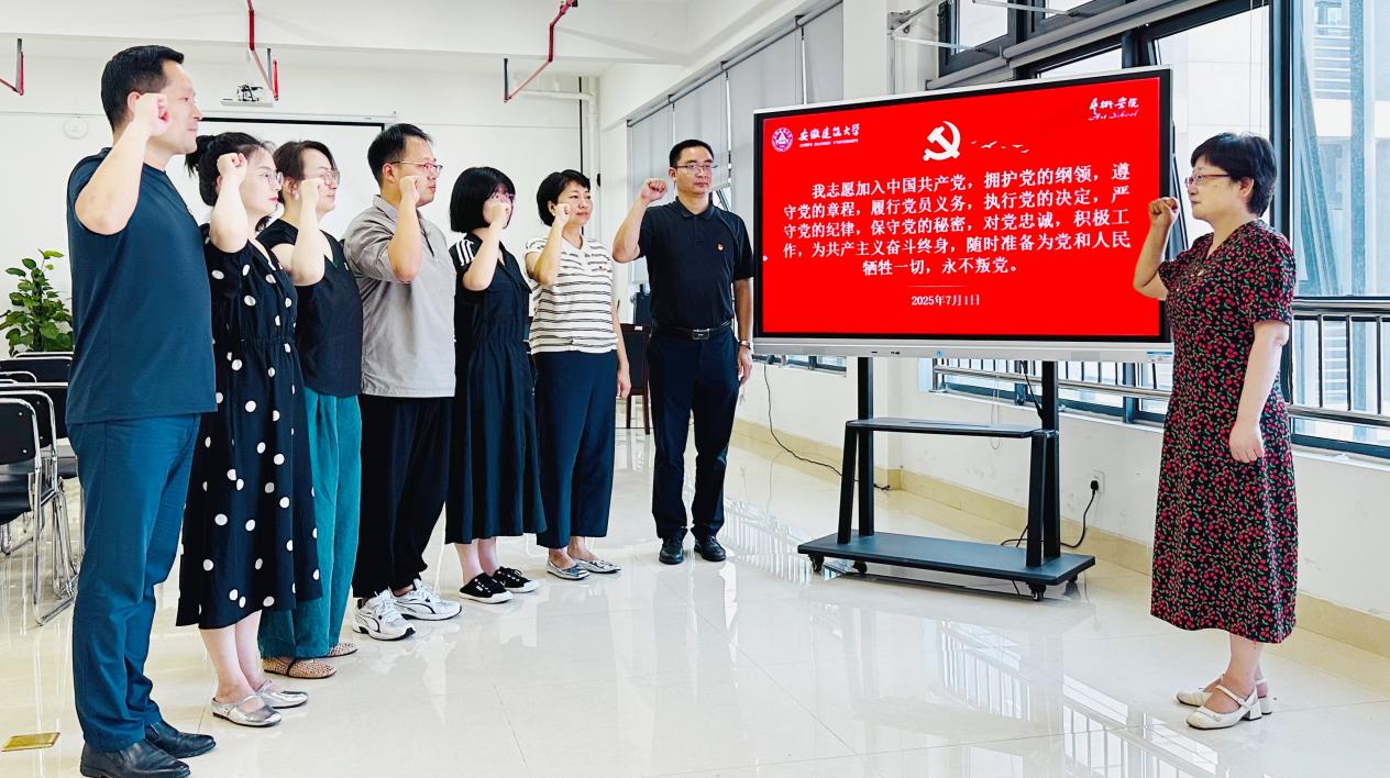 学院党委书记潘青为参加活动的党员教师逐一送上政治生日贺卡。贺卡内页镌刻入党誓词与政治生日寄语,承载着党组织对党员的殷切期望。党员教师佩戴党员徽章、举起右拳,以铿锵有力的誓言重温入党初心。政治生日是党员身份的精神烙印,希望大家时刻牢记党的宗旨,热爱党的教育事业,在教学科研中践行育人使命,争做新时代筑梦人。