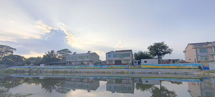 38℃的高温下,正午的墙面被晒得滚烫,同学们踩着2米高的梯子挥毫创作。画笔游走间,层叠的山峦、错落的屋舍与村民劳作的场景渐次浮现。墙绘既展现了乡村的自然风光与民俗文化,也寄托了对美好生活的向往。“乡村的墙会记得,我们用青春色彩为汤池振兴添过一笔亮色”,学生擦着汗说。这幅充满生机的墙绘吸引了众多村民驻足,成为汤池村一道亮丽的新风景线。