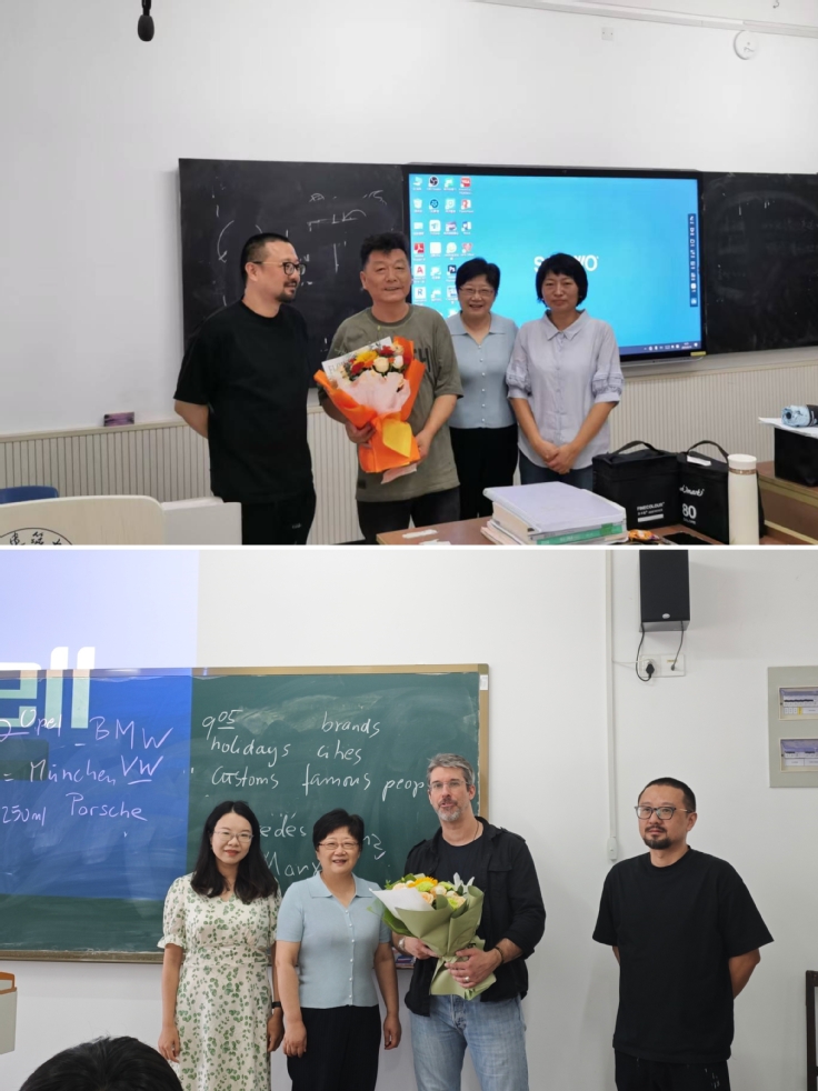 在2024级环境设计(中外合作)专业教室,外教Marc Wiechmann老师欣喜地接过鲜花,他由衷感谢学院领导的祝福,高兴地表示:“今天正好是我在安建大的第一次课,今天的温馨经历令我非常难忘。”