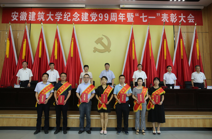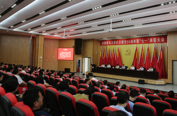 本网讯 7月1日,学校在南区实验综合楼二楼报告厅隆重召开纪念建党99周年暨“七一”表彰大会。校领导,全校副处及以上干部、各党支部书记以及受表彰的先进基层党组织代表和优秀个人参加会议。会议由校党委副书记、校长孙道胜主持。