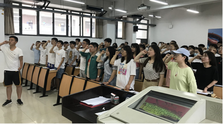 党支部始终把党的政治建设摆在首位,认真学习贯彻习近平新时代中国特色社会主义思想和关于教育的重要论述,把党的创新理论学习与党支部“三会一课”制度结合起来,着力打造“学习型”党支部,在“学”中增强党性意识。党支部针对学生党员特点,运用两微一端、学习强国等平台,认真组织党员学习《党章》和习近平总书记系列重要讲话精神;学以致用,全体党员把学习成果贯彻落实到学习、工作、生活的方方面面,自觉在思想上、政治上、行动上同以习近平同志为核心的党中央保持高度一致。