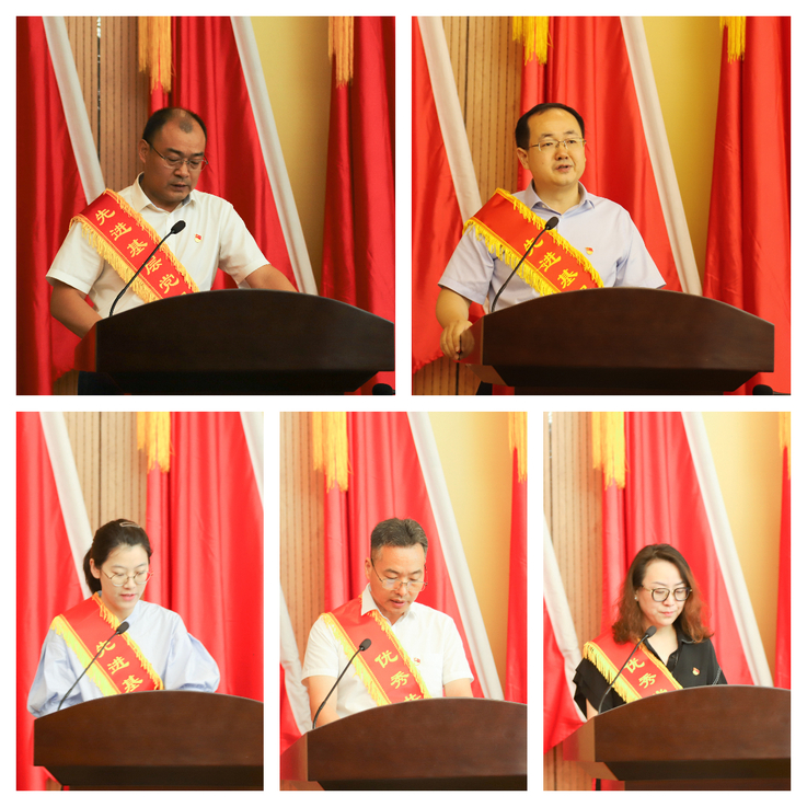 先进基层党委(党总支)代表,电子与信息工程学院党委书记孙长城;先进教师党支部代表,公共管理学院副院长、人力资源与社会保障系教师党支部书记连瑞瑞;先进学生党支部代表,土木工程学院土木工程第二学生党支部书记范瑾;优秀共产党员代表,环境与能源工程学院党委副书记胡志龙;优秀党务工作者代表,艺术学院视觉传达教师党支部书记王新分别发言。