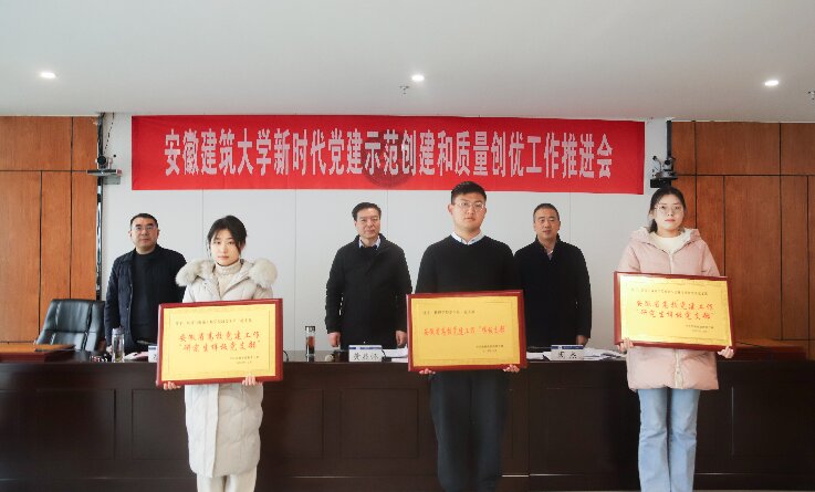 校党委常委、组织部(党校)部长吴运传通报了学校党建“双创”工作和“双带头人”工作室培育创建情况。闵杰宣读了第二批全省高校党建“双创”培育创建单位、星级党支部、学校“双带头人”教师党支部书记工作室建设单位名单。校领导依次为获国家级、省级新时代党建示范创建与质量创优验收单位(培育单位)的学校基层党组织,学校教师党支部“双带头人”工作室等授牌。