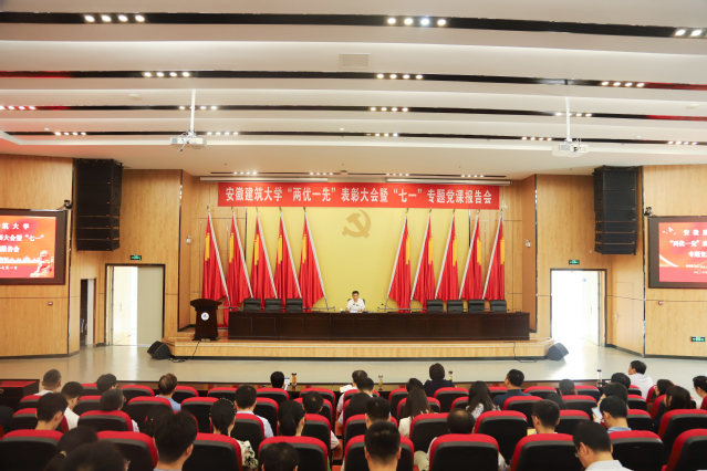 本网讯 7月1日,学校党纪学习教育专题党课在紫云路校区徽风楼二楼报告厅举行。校党委书记马文革以“以铁的纪律为学校高质量发展提供坚强保证”为题作专题党课报告。校领导班子成员、副处级以上干部、全校师生党支部书记参加报告会。