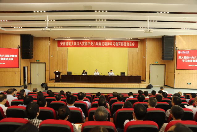 校党委书记马文革动员讲话强调要深刻认识学习教育的重要意义,开展深入贯彻中央八项规定精神学习教育,是今年党建工作的重点任务,总书记高度重视,发表重要讲话、作出重要指示批示,为开展学习教育指明了方向。全校党员、干部要切实把思想和行动统一到党中央和省委决策部署上来,扎实有效开展学习教育,确保抓出高质量好效果。要深刻领悟“两个确立”的决定性意义,坚决做到“两个维护”,充分认识开展学习教育是巩固拓展主题教育成果和党纪学习教育成果、纵深推进全面从严治党的重要举措,是密切党群干群关系、巩固党的长期执政基础的必然要求,是加快打造“三地一区”、奋力谱写中国式现代化安徽篇章的有力保障,是建设国内一流、特色鲜明高水平建筑大学的坚强支撑,全校党员、干部要切实增强深入贯彻落实中央八项规定精神的政治自觉、思想自觉和行动自觉。